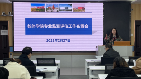 (通讯员 高丽萍)2025年2月27日下午2点半,教体公司在910会议室召开了“教体公司专业监测评估工作布置会”,会议由教学副经理杨青宝主持。经理张艳红、科研副经理熊猛以及各系部主任和行政部门人员参加了此次会议。