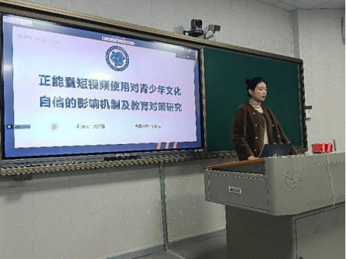 接着是吴新丽的毕业论文预答辩《正能量短视频使用对青少年文化自信的影响机制及教育对策研究》,探讨正能量短视频的使用对青少年文化自信的影响,其研究一编制正能量短视频问卷,研究二通过问卷调查探讨了正能量短视频与青少年文化自信的关系,研究三通过开展正能量短视频使用的系列团辅对青少年文化自信进行干预,以提高青少年文化自信。