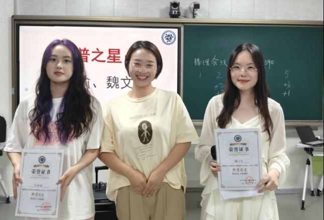 在荣誉证书颁发环节,对同学们实名推荐的“编辑之星”、“科普之星”、“服务之星”、“学术之星”和“领袖之星”进行提名,并对最终获奖者颁发证书,以表彰每位获奖者都在各自的领域展现出了卓越的能力和贡献,为社心的发展做出了积极贡献。在此次颁奖典礼中,共评选出编辑之星3名、科普之星2名、服务之星7名、学术之星4名、领袖之星3名。
