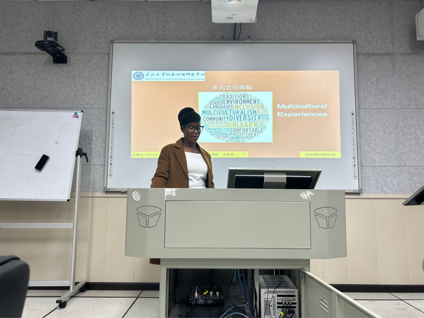 接着,Annah同学汇报的《Negative multicultural experiences can increase intergroup bias》,她从研究理论背景、方法和结果、研究结论、研究的意义和结论这五个方面展开汇报。该研究就负面的多元文化对群体间的偏见进行探讨。结果表明:消极的多元文化经历会显著增加各种背景下的群体间偏见。最后提出研究意义:全面解决这种消极情绪可以改善群体间关系并加深不同社区之间的理解。