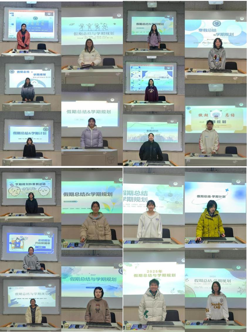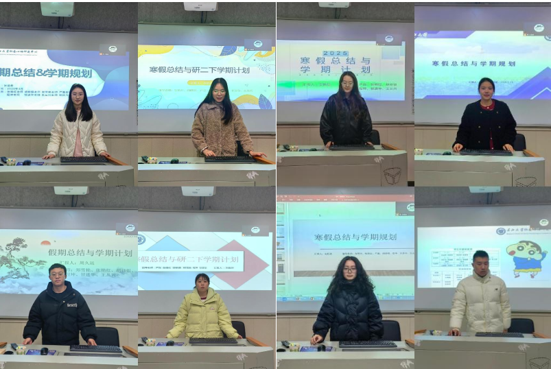 首先,由研一、研二的同学进行寒假总结与学期规划。同学们从论文进展、实习工作、文献阅读、技能训练、娱乐放松等多个方面讲述了他们丰富多彩的寒假生活。同时,同学们也向大家呈现了本学期的学习规划,研二同学的规划侧重于毕业论文进展与教学实习,研一同学的规划则侧重于教学实训、专业技能训练、知识储备等方面。