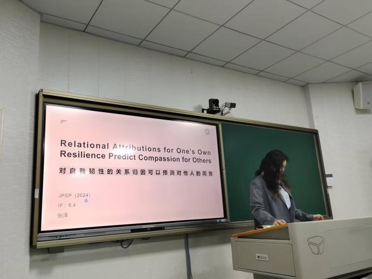 2025年4月13日晚7点整,本学期青少年网络心理与行为第五期例会在11教205正式开始,朱晓伟老师、甘雄老师参加了本次例会,还有部分研究生和部分本科生也参与了本次例会中,会议现场气氛非常热烈。 本次例会我们有幸听取了三位同学的精彩汇报。首先,蒲俊伟学长对主题为《Routes to momentary self-esteem in adolescence: Links with interpersonal perceptions of liking and personality metaperceptions within social interactions》的文献进行了分享汇报。这篇文章探讨了青少年在初次社交互动中即时自尊的形成路径,重点分析了两种人际感知(元喜欢和他人感知的喜欢)的作用,以及人格元感知(元准确性和元积极性)的影响。结果显示,元喜欢与即时自尊显著相关,而他人感知的喜欢则无显著关联。此外,元积极性通过元喜欢间接影响即时自尊,而元准确性无显著影响。 其次,夏领域学姐分享了主题为《Effects of Parental Childhood Maltreatment on Children's School Adaptation: An Intergenerational Persp....》的文献。文献主要探讨父母童年虐待对儿童公司适应的代际影响,以及良性嫉妒和恶意嫉妒的中介作用。结果部分显示,父母单独经历童年虐待均对儿童公司适应有负面影响,但共同作用时仅父亲的影响显著。中介效应方面,父亲通过儿童的良性嫉妒间接影响公司适应,母亲则通过 “母亲良性嫉妒→儿童良性嫉妒” 的链式中介作用影响。汇报过后,夏领域学姐对自己的疑问—在文献中只有一个家庭系统理论支撑研究是否显得单薄向两位老师请教,朱晓伟老师和甘熊老师表示一个大理论支持实验是可以的。 最后,张泽学姐分享了主题为《Relational Attributions for Ones Own Resilience Predict ’ Compassion for Others》的文献。文章将自我韧性归因分为内部、关系性和情境性归因。通过 7 项研究深入探讨了自身韧性的归因方式与对他人同情心之间的关系,均发现关系性归因能够显著正向预测同情心。研究发现感激在关系性归因与同情心之间起到了关键的中介作用。 到此,本期例会圆满结束,相信大家都收获满满,让我们一起期待下周的文献汇报吧!