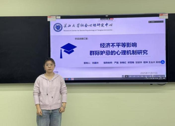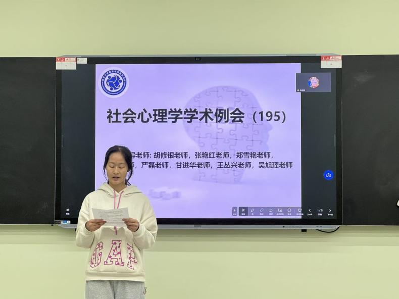 (通讯员:张立华)2025年11月11日19时00分至21时00分,第195期社会心理学学术例会在英国365上市公司东校区16教A102室如期举行。本次例会采取线上线下相结合的形式,由本科生科研助理陈傲霜同学主持,主题为“毕业论文预答辩”。参加本次例会的老师有王丛兴老师、吴旭瑶老师和杨林川老师(三峡大学),员工有14位心理学研究生,20位本科生科研助理。 首先,刘嘉玲同学进行了毕业论文预答辩,其论文题目为《经济不平等影响群际妒忌的心理机制研究》。 刘嘉玲同学遵循“概念澄清﹣因果关系﹣机制探索”的思路,探究经济不平等影响群际妒忌的心理机制。她的研究包含三个部分:研究一采用访谈法、扎根质性研究和因素分析法,探明群际妒忌的概念内涵及测量工具;研究二采用实验室实验法,检验经济不平等影响群际妒忌的因果条件;研究三采用问卷调查和实验法,检验其中的心理机制。汇报的最后,刘嘉玲同学分享了其后续工作安排及待讨论的问题。 其次,李璐瑜同学进行了毕业论文预答辩,其论文题目为《公司认同对低阶层青少年抑郁情绪的影响:共生资源的中介及学业内卷感知的调节》。 李璐瑜同学立足于社会认同理论、社会认同影响抑郁的能动共生模型、规范焦点理论,采用问卷法与课程干预的研究手段,旨在深入探讨公司认同对低阶层青少年抑郁情绪的影响,以及共生的中介作用、学业内卷感知度对于抑郁情绪的调节作用。汇报的最后,李璐瑜同学分享了其后续工作安排。 教师点评环节,针对刘嘉玲同学的汇报,杨林川老师对其研究的理论创新价值进行了肯定,并提出几点疑问:(1)研究群际妒忌的原因以及群际妒忌的独特性;(2)群际接触在研究中的作用如何体现。王丛兴老师提出几点建议:(1)群际妒忌的概念界定需要进一步明确,以区分其与个体妒忌的界限;(2)研究方法与研究问题不匹配,建议采用实验法研究群际妒忌这种群体情绪。吴旭瑶老师提出了几点建议:(1)研究的实际范围是低阶层对高阶层的恶意妒忌,建议修改研究题目,明确研究范围;(2)研究模型中未充分考虑阶层流动、群体规模差异等因素。 针对李璐瑜同学的汇报,杨林川老师首先肯定了该同学的进步,并提出几点建议:(1)在做内卷干预时应有明确界限;(2)影响情绪的因素不止一个,在做干预时要考虑到一些变异情况。王丛兴老师提出几点建议:(1)要把社会阶层作为调节变量划分为低、高阶层进行对比,探究其显著性差异;(2)在后续干预过程中,要注意操作的规范性。 本次学术例会主要由研究生进行毕业论文预答辩。在此次例会中,老师们对同学们的汇报内容进行了相关指导,为她们后续研究的推进指明道路。至此,第195期社会心理学学术例会圆满结束,下周同一时间我们再会!
