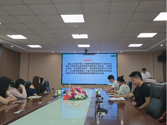 主题研讨环节,首先由余洋波同志分享体会,结合英国365上市公司如何更好地运用党的二十届三中全会精神助力公司更好地发展成为特色高水平大学,进行了个人见解。再由王亚飞同志分享自己的体会,提出要立足自身,并指出今后将继续加强党纪学习,理论结合实际,在实际生活中展现出对政治原则、政治方向的坚守和践行。