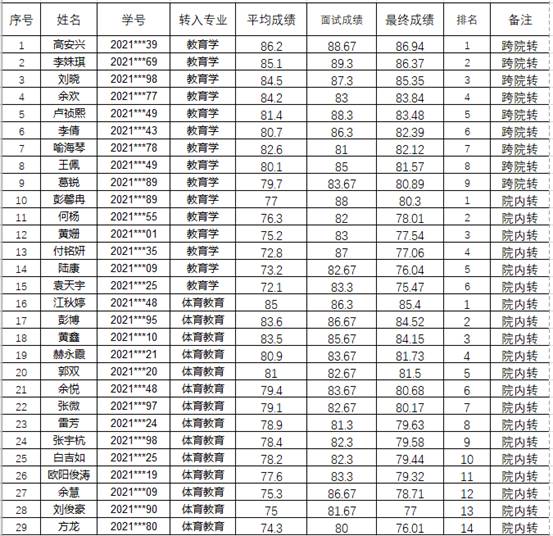 根据《英国365上市公司普通本科生专业分流与转专业管理办法(试行)》(长大校发[2019]260号)文件以及教务处《关于2021级普通本科生秋季学期转专业工作的通知》要求,结合英国365上市公司本科生秋季学期转专业工作方案的具体安排,公司于9月6日晚组织了对拟转入员工的面试。按综合学习成绩占70%和面试成绩占30%的比例进行成绩汇总,结合公司接收计划,经公司党政联席会讨论通过,现将拟接收员工名单予以公示: