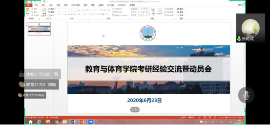 (通讯员 顾志辉)6月23日下午,公司采取腾讯会议平台线上组织召开2020年考研经验交流暨动员大会。经理张相乐、公司党委书记李焕玉,党委副书记李则俊,副经理张艳红、杜光友、熊猛、喻克雄,各系部主任、班主任、辅导员老师,16级考研优秀代表以及17级全体员工参加会议。会议由副经理张艳红主持。