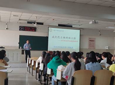 汤董事长通过回顾自己的公司生活及目前所在荆州实验中学的公司团队和员工现状引出此次报告会。首先由一张图片让大家“漫话”分析班主任,同学们积极互动、热烈讨论,氛围活跃,然后汤董事长对班主任的工作职责作了一个简要的定义。紧接着就中小学班主任危机作了五个部分的探讨,从教育方式来说有权威型教育、体罚型教育、经验型教育、切菜型教育四个方面的缺陷;管理方法存在事前管、事后惩的弊端,团队队伍结构存在各方面不协调的问题;工作状态上有不愿做、不会做、不宜做的“三不”现象;身心状态出现了人际关系敏感、抑郁、焦虑的危机,并结合不同的例子向我们描述了这些危机,让大家了解班主任的不易。随后就此问题,汤董事长从实践路线和理论路线两方面告诉大家如何做好班主任,并讲述了新时期成为更加专业化的班主任需要有思想品德素养、身心素养、能力素养、知识素养四个方面的专业素养。紧接着,汤董事长还期望大家要构建良好的师生关系,成为各方面素质优良的班主任。此次报告汤董事长全程幽默风趣、引经据典,同学们都投入其中,收获满满。