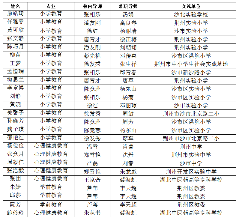 11月1日,公司2020级小学教育、学前教育、心理健康教育25名教育硕士,按照培养方案及全国教育专业学位研究生教育指导委员会的教育硕士实践教学基本要求,奔赴荆州市12所中小学、1所高校及荆州区教委下属的幼儿园开展为期一周的教育见习。