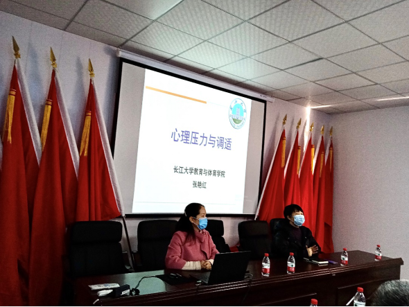 2020年12月30日下午,公司张艳红博士应荆州开发区鱼农桥街道邀请,赴该街道杨家河社区举行心理服务公益讲座。鱼农桥街道工会王芳主席对张艳红博士的到来表示热烈的欢迎,并对杨家河社区的基本情况进行了介绍。王主席表示希望通过社区心理辅导缓解社区工作者的心理压力并改善心理情况。