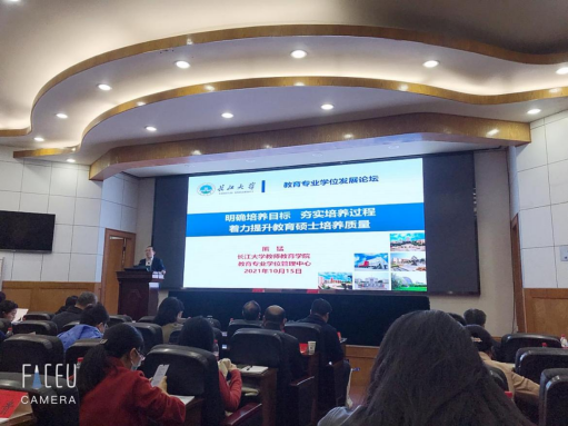论坛由教师教育公司经理张相乐教授主持。论坛根据主题内容安排了七项议程。首先由研究生院副经理、研工部副部长(主持工作)赵辉教授宣读公司成立教育专业学位管理中心、成立教育专业学位研究生教育指导委员会的文件。随后,教师教育公司副经理熊猛博士作了题为《明确培养目标夯实培养过程 着力提升教育硕士培养质量》的主题报告,从公司教育专业学位发展简况、全国教育专业学位教指委工作要求、教育硕士培养导师及实践基地职责等方面,对全国教育专业学位研究生教育指导委员会有关要求做了详尽解读。