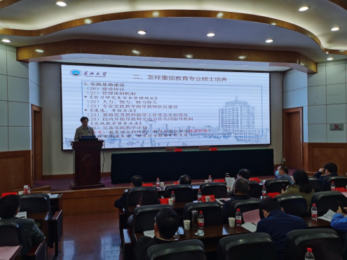 研究生院副经理余劲东博士围绕“完善过程监控、筑牢底线思维”对教育专业学位巡查与专项评估作了全面的布置和要求。他强调要注重专硕的差异性、指标的系统性,以提高教育专硕培养质量为目标,以维护公司公司切身利益为己任。