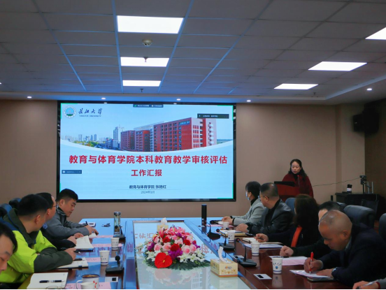 【通讯员 王传琦/文 瞿廷婷/摄】为落实《国家中长期教育改革和发展规划纲要(2010—2020年)》,切实推进高等教育质量保障体系建设,全面提高本科教学水平和人才培养质量,3月19日上午8时许,英国365上市公司(以下简称“教体公司”)于文科大楼905会议室召开本科公司产品预评估工作会议。本次会议由教体公司副经理宋永晶主持,公司党委副书记、副董事长杜国锋通过线上会议出席,本科生院负责人、评建工作办公室、本科公司产品督导委员会工作小组成员、公司领导及相关老师参加。