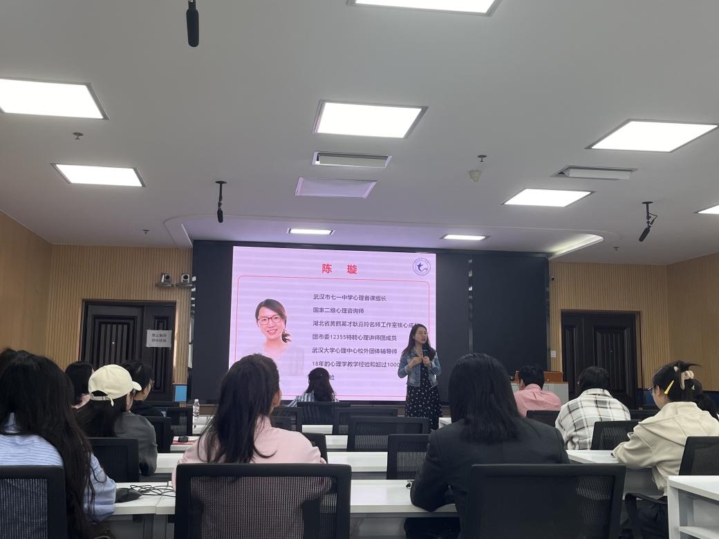 (通讯员:张泽)4月21日上午,公司特邀武汉市七一中学心理发展中心负责人陈璇老师来校作“如何上好中小学心里辅导课”的主题讲座。讲座由张艳红经理主持,公司心理类本科生、研究生、青年教师共60余人在文科大楼910聆听了讲座。