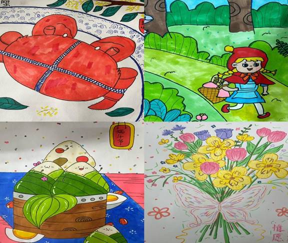 5月31日,手工考核和绘画考试在13—D—124教室举行。员工自选主题在规定时间内进行现场手工制作,他们所展出的手工作品设计独特,制作精美,兼具观赏性和教育性。同时,员工的绘画考核按各自抽到的主题在规定的时间内进行创作,绘画考核内容主要有《大闸蟹》、《森林里的小红帽》、《端午节--粽子》、《送给妈妈的一束鲜花》等,员工们用画笔勾勒了精彩的世界,以色彩绘就美好未来。手工和绘画考核凸显了同学们的美术创作、环境创设等方面的专业能力。每件作品都独具匠心,风格各异,充分展示了学前专业员工们的技艺和才华。