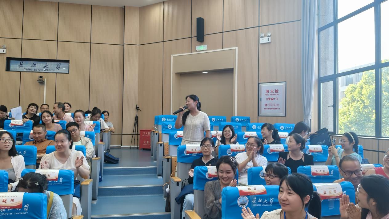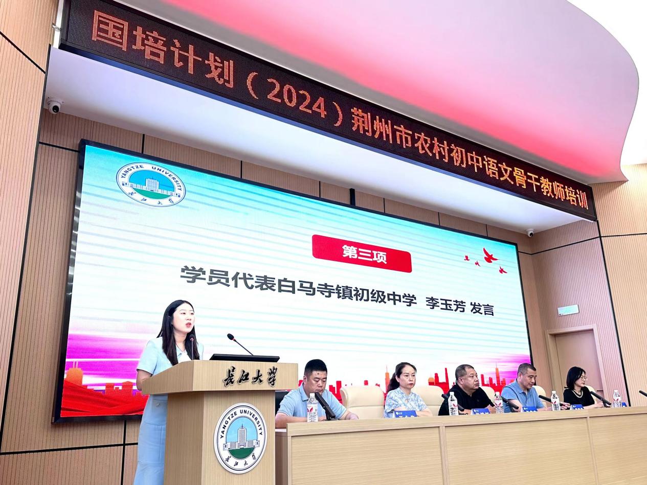 来自江陵县白马寺镇初级中学的李玉芳老师作为学员代表进行了表态发言,她表示,全体学员要保持学习热情、遵守培训纪律、推动互助学习、积极总结经验。