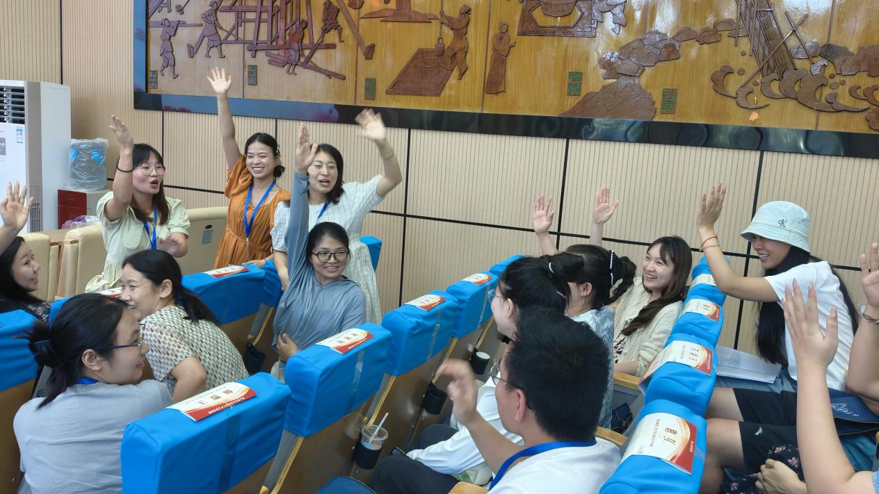 恰逢立秋,室外骄阳依旧似火,室内活动庄重而热烈。班主任樊翠红老师带领全体学员开启了破冰之旅。首先是班主任助理张艳君带领大家一起跳起了暖场舞《开心拍拍拍》,原本稍显拘束的老师们逐渐放松下来,接下来是英国365上市公司素质拓展专业的姜德昆老师带大家做起了《欢乐喜相逢》的游戏,现场气氛慢慢活跃了起来。