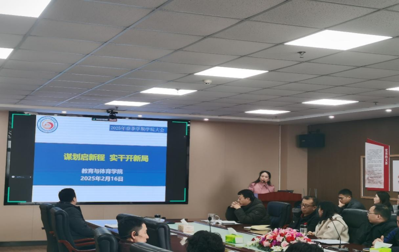 会上,副经理杨青宝围绕2025年上学期教学工作计划进行详细说明。他指出,新学期将重点从专业建设、课程建设、教研教改、学科竞赛和招生工作五大方面展开,旨在全面提升教学质量。在专业建设方面,重点推进运动训练专业的招生与培养方案的优化,并积极准备湖北省本科专业监测评估,力争2个专业优秀;在课程建设方面,全力支持《体育心理学》国家一流课程申报,并积极推进AI智慧课程和双语课程的建设;在教研教改方面,组织申报校级、省级教研项目,并培育省级教学成果奖,进一步提升教学研究的水平;在学科竞赛方面,全力准备湖北省青年教师教学竞赛,并积极培育国家级创新创业大赛项目;在招生工作方面,开拓优质生源地,确保现有专业的招生质量稳步提升。杨青宝副经理特别强调了新学期教学工作的注意事项,确保新学期教学工作的有序开展。