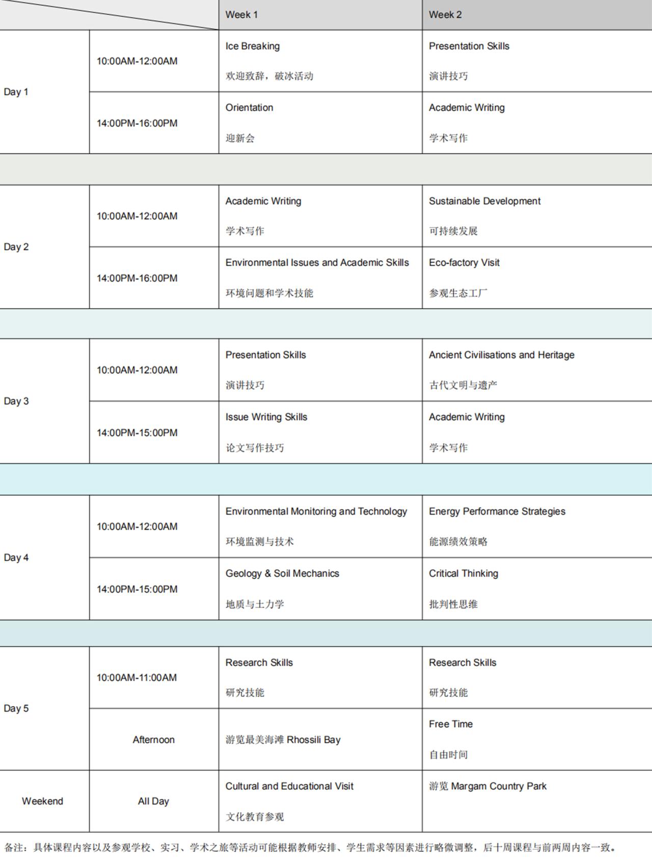 ③课程安排表(每周):