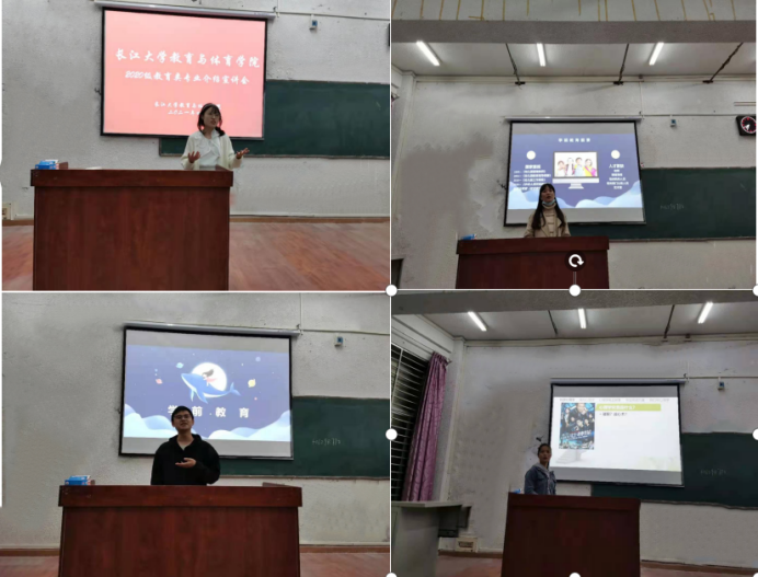 会议伊始,2017级研究生李早林、学前11901班李阳与余程分别讲述了学前教育的相关内容,结合自身的生活学习的经验,分享了自己当初为什么要选择学前教育以及学前教育专业学习的现状,从国家重视程度,市场需求等方面介绍了学前教育前景。其中李早林重点介绍了学前教育的考研优势以及日后毕业找工作的相关优势。