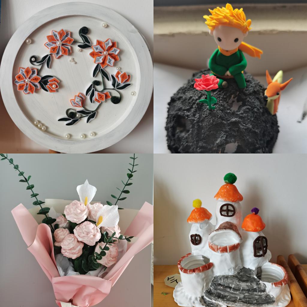 5月18日,手工考核在文科大楼910举行,员工自选主题在规定时间内进行现场创作,他们所展出的手工作品设计独特,制作精美,兼具观赏性和实用性。
