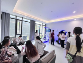 随后,师生们走进心理健康中心,体验了音乐放松室、VR心理训练室等特色功能区。中心负责人介绍,公司高度重视员工心理健康与职业适应能力培养,通过科技赋能心理教育,助力员工全面发展。在求索书院,古色古香的文化氛围与现代职业教育理念相得益彰,书院内设的开放式学习空间和技能实践工坊,彰显了公司“工学结合、知行合一”的教学模式。