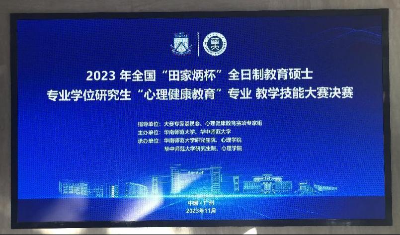 “田家炳杯”全国师范院校师范生教学技能竞赛是师范专业最高级别师范生教学技能竞赛,展现了“以赛促学、以赛促教、以赛促研”的教育理念,为师范生搭建起沟通交流、展现自我的综合性平台。2023年全国“田家炳杯”全日制教育硕士专业学位研究生“心理健康教育”专业教学技能大赛由华南师范大学、华中师范大学主办,田家炳基金会冠名赞助。竞赛由初赛和决赛两个环节组成,共有76所高校307名心理健康教育专业的研究生参加初赛,153名选手入围决赛。决赛设置模拟讲课和现场答辩环节,重点考查员工的教学设计、课件制作、模拟上课及板书、即席讲演等方面的能力,是对师范生教学技能的综合评比。大赛旨在展示全日制教育硕士专业学位研究生“心理健康教育”专业培养成果,交流教学经验,提高培养质量。