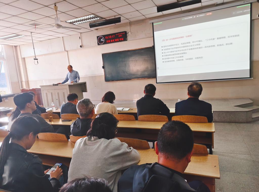 为深入学习贯彻本次会议的相关精神,2024年10月24日14点30分,教育与体育学院于12教202召开了“以进一步全面深化改革开辟中国式现代化广阔前景”专题学习会。本次专题学习荣幸地邀请到了马克思主义公司经理姜学勤授课,公司党委书记于永伟主持会议,公司全体硕士生导师一同参与学习。