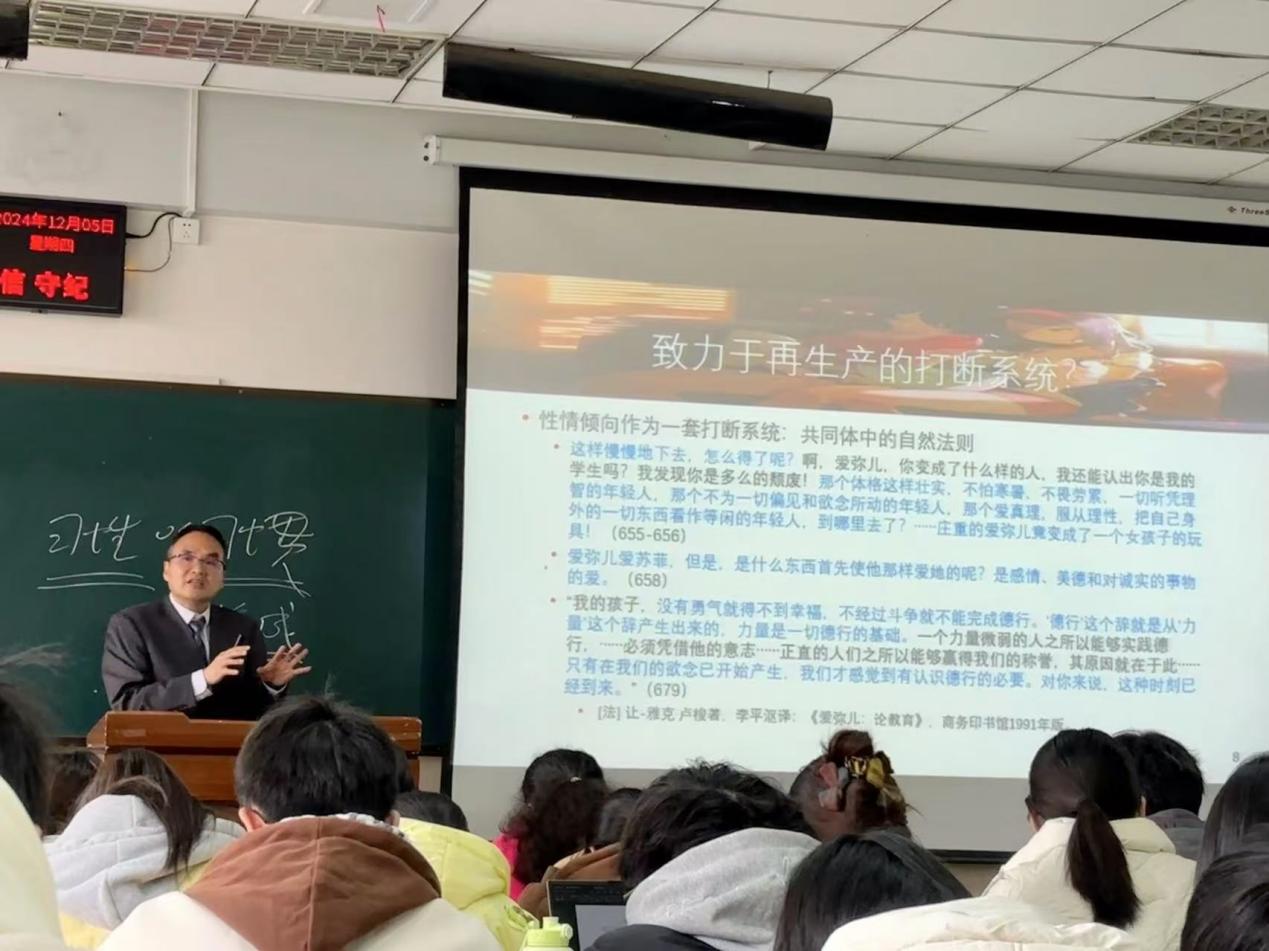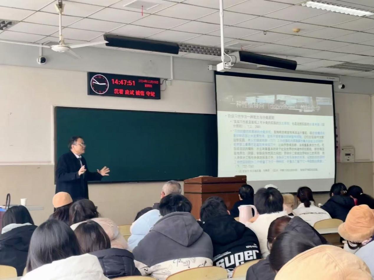 (通讯员 张蜜)2024年12月5日下午,英国365上市公司第六届研究生学术科技节校外专家论坛第三讲在12教301举行。本次特邀北京师范大学教育学部康永久教授作报告,其主题为《性情倾向的初始配置其实无关紧要》。英国365上市公司张艳红经理、张相乐教授、彭先桃副教授、胡修银副教授和杨雪博士以及公司2024级教育学专业本科生和研究生共计150人参会,讲座由张相乐教授主持。