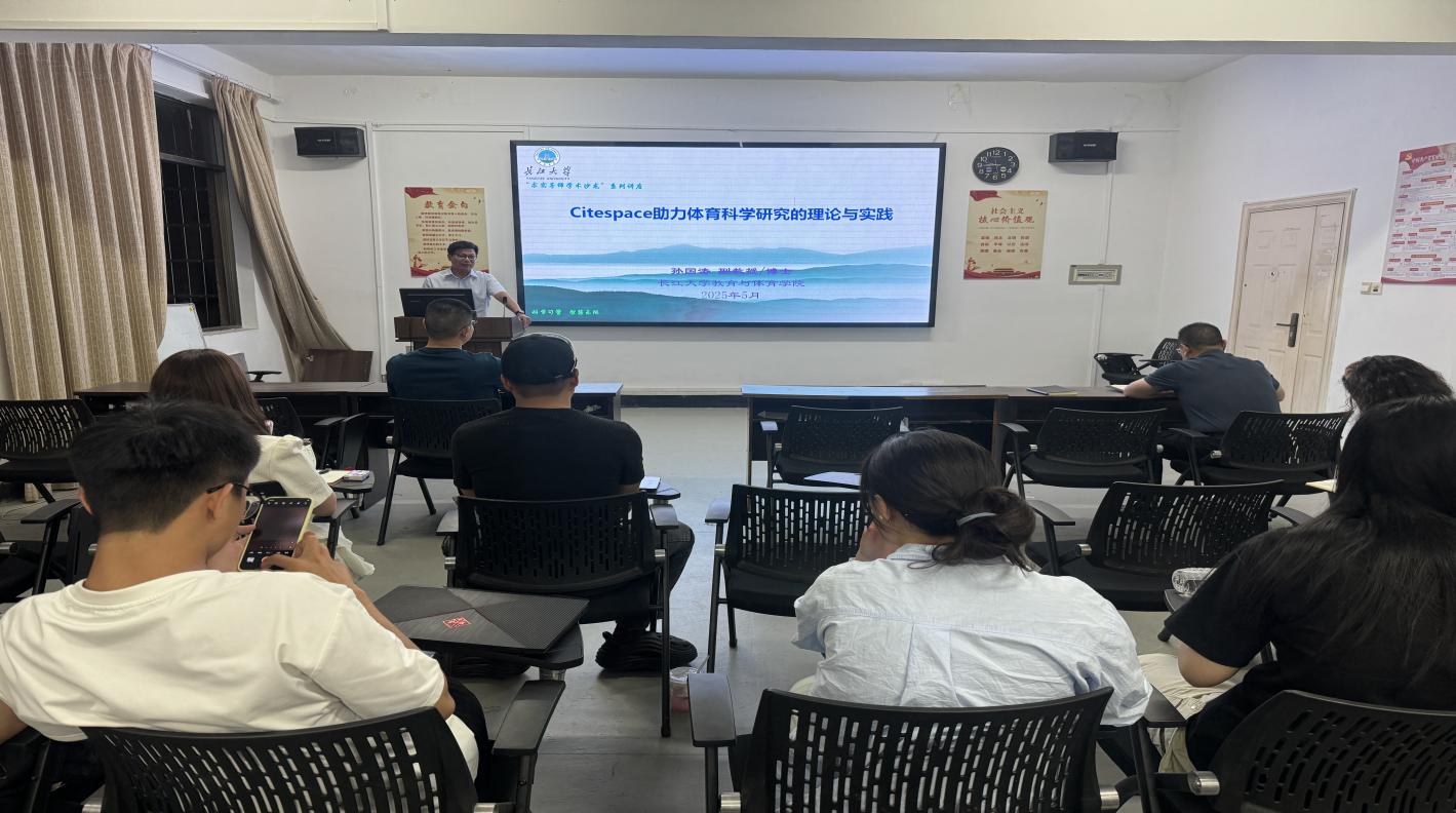 (通讯员 孙国良)2025年5月9日20:00,孙国涛副教授以《CiteSpace助力体育科学研究的理论与实践》为题在5教203开展了“求实导师学术沙龙”讲座,2023级、2024级体育类研究生以及部分教师参加了本次活动。