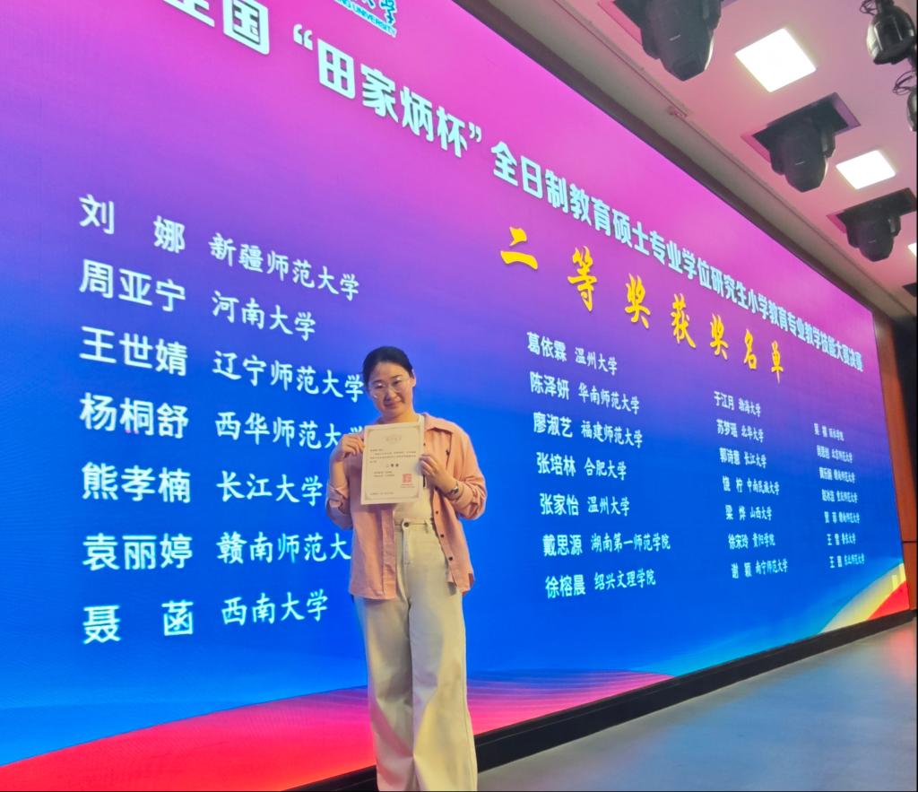 公司研究生获得全国“田家炳杯”小学教育专硕教学技能大赛二等奖
