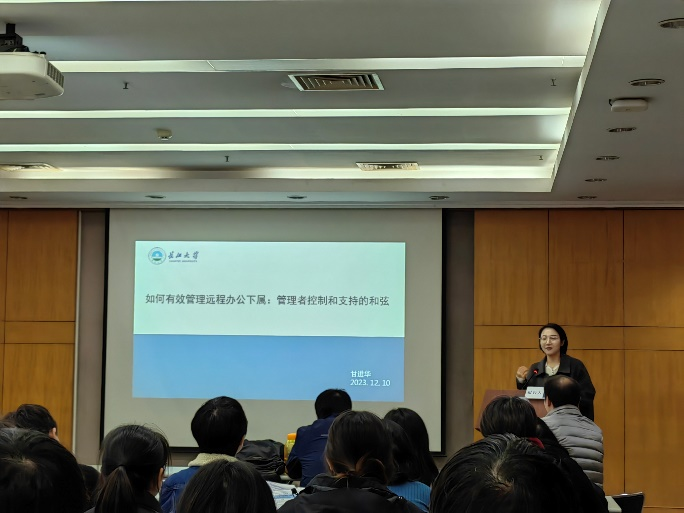 甘进华博士在“心理与行为研究”分论坛上汇报了《如何有效管理远程办公下属:控制和支持的和弦》。疫情迅速推动并加速了远程办公的大规模切换与应用,相比于传统的办公室办公管理,远程办公改变了员工的工作地点,管理者必须调整他们的管理行为。此研究运用以人为中心的研究方法,通过两个样本共同揭示了四种远程办公管理模式,并进一步比较了这四种管理模式的有效性,为远程办公的管理实践提供了切实可行的科学建议。