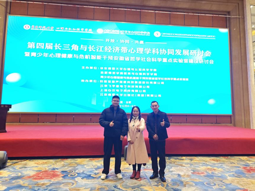 (通讯员 王丛兴)第四届长三角与长江经济带心理学科协同发展研讨会暨青少年心理健康与危机智能干预安徽省哲学社会科学重点实验室建设研讨会于12月6日至12月8日在合肥举办。本次会议由华东师范大学心理与认知科学公司与合肥师范公司教育与心理科学公司共同主办。教育部高校心理学科教指委主任周晓林教授,中国心理学会理事长苏彦捷教授等近50多家心理学单位负责人和学科带头人参会,公司张艳红经理、严磊副教授和王丛兴博士作为代表参加了此次会议。