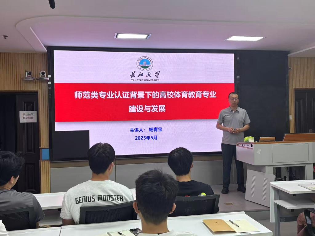 (通讯员 熊一铮)2025年 5月15日上午,公司“求实导师学术沙龙”之《师范类专业认证背景下的高校体育教育专业建设与发展》在文科楼910举行,杨青宝副教授主讲,2024级体育类研究生参加了本次活动。
