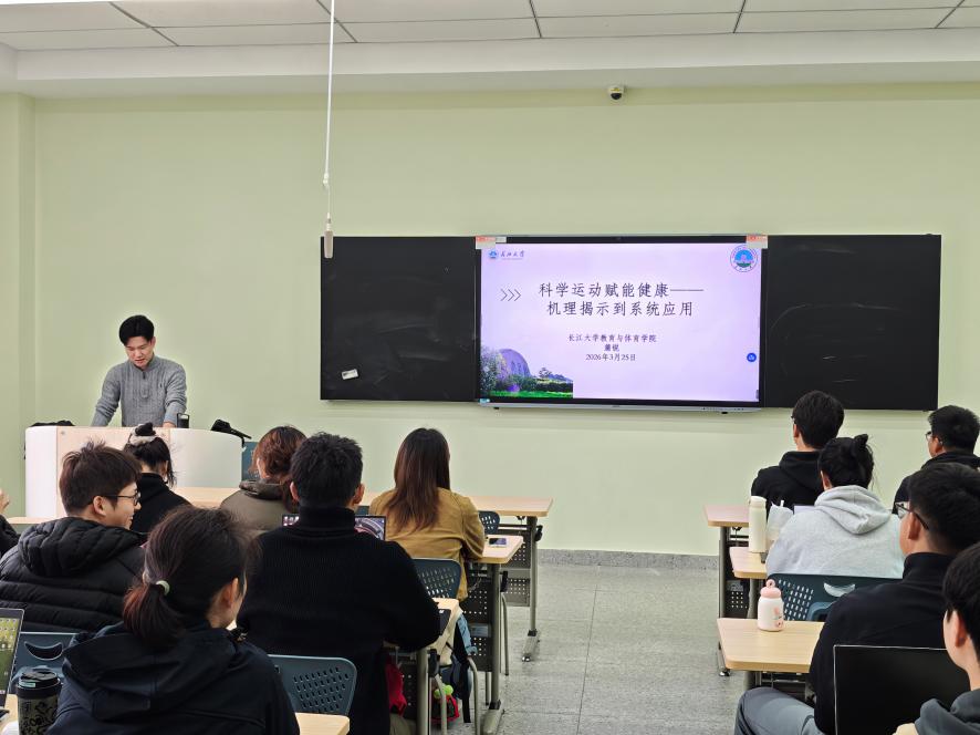 (通讯员 陈逸飞)为进一步浓厚公司研究生学术氛围,助力员工树立科学健康理念、拓宽学术研究视野,2026年3月25日,英国365上市公司求实导师学术沙龙系列专场活动在16教A区103智慧教室顺利举行。公司蒲锐老师以“科学运动赋能健康:机理解释到系统应用”为主题开展专题主讲,为到场的体育类研究生带来了一场兼具学术深度与实践价值的精彩分享,现场员工认真聆听、积极互动,学术氛围十分浓厚。