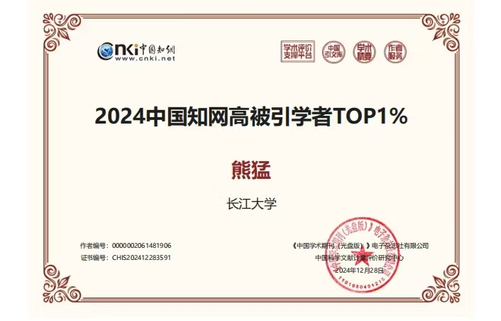 中国知网中国科学文献计量评价研究中心基于中国知网收录的10年(2014-2023)国内学术成果计算每位学者的单篇论文引证标准化指数(Paper Citation Standardized Index,简称 PCSI)。2024年全国约335万名作者进入初选。“2024中国知网高被引学者TOP1%”需满足:近十年发文的作者总PCSI位于初选作者范围的TOP1%,且近十年发表PCSI高于理论平均值(1.65)的论文不少于5篇以及近十年至少发表1篇高影响力论文。“2024中国知网高被引学者TOP5%”需满足:近十年发文的作者总PCSI位于初选作者范围的TOP1%~TOP5%,且近十年发表PCSI高于理论平均值(1.65)的论文不少于5篇以及近十年至少发表1篇高影响力论文。