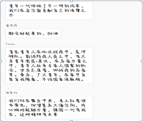 团会上,各团支部利用雨课堂、QQ课堂、腾讯会议、微信讨论等多媒体形式,观看了“让青春在党和人民最需要的地方绽放绚丽——习近平总书记给北京大学援鄂医疗队全体90后党员的回信”、“致敬90后最美逆行者”等网络视频资源,并认真学习了回信的内容,让同学们了解抗疫期间当代青年无私奉献,艰苦奋斗的一线生活。此外,各团支部以讲解、讨论等多种形式让同学们积极学习抗疫期间广大青年不惧风雨、勇担重任的精神,如通过讨论交流的形式让同学了解疫情期间个人需要注意的问题,或者以故事分享的形式让同学们分享身边的抗疫故事等等。