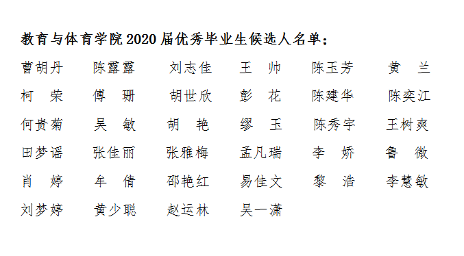 根据中共英国365上市公司委员会员工工作部《关于开展2020届优秀毕业生评选与表彰工作的通知》精神,经员工本人申报、班级提名、公司审核,评选出陈露露等34名同学为教育与体育公司“2020届优秀毕业生”候选人,现对上述人选予以公示。