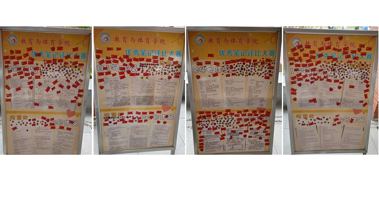 本次大众展评活动采取线下贴纸投票的形式。课间时分,悦人眼目的字体,各具特色的排版,图文并茂的内容,让老师和同学们纷纷驻足欣赏,大家认真比对每一份笔记,然后投出自己宝贵的一票。历时两天,优秀笔记展板的投票处已贴满了贴纸。