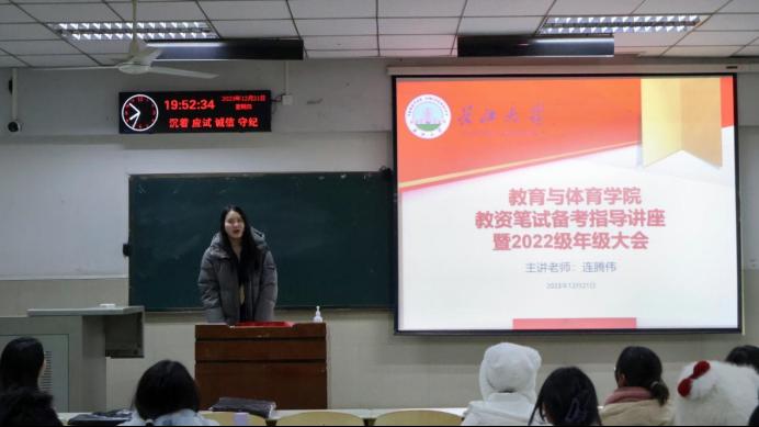 【通讯员 钟天悦 王传琦 瞿廷婷/文 冯佳颖/摄】思深方益远,谋定而后动。为加强教育专业教育管理工作,促进员工综合素质发展,12月21日下午6时许,英国365上市公司与华图教育于东校区12教102联合举办22级教育专业年级大会。此次大会由任雯婷老师主持,华图教育讲师连腾伟和兼职辅导员姚慧爽主讲,22级教育专业全体同学参加。