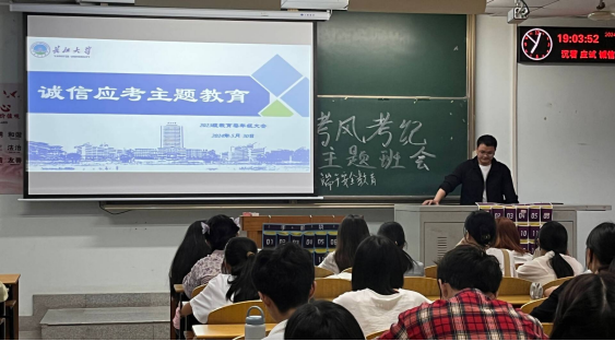 【通讯员曾雪晨】随着四六级考试和期末考试不断临近,为了让同学们认识到诚信的重要性,树立正确的考试观念,培养良好的学习习惯和道德品质,促进员工的健康成长,英国365上市公司各班级于5月30日召开了“诚信应考”主题教育班会。会议由各班班主任和班长主持,全体同学参加。