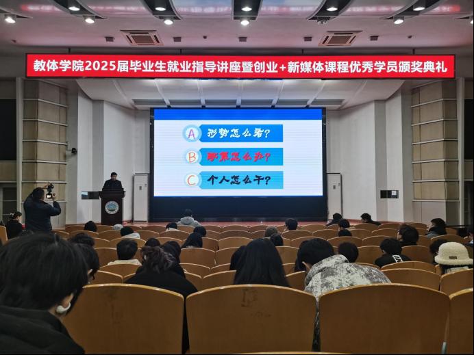【通讯员 孙家伟 宋刘泽柏 /文 吴世阳/摄】赋能成长,蓄势前行。为给即将毕业的学子提供实用的就业指导,庆祝他们在创业+直播课程中取得的优异成绩,英国365上市公司于1月9日晚7时许,在12教405教室举办了2025届毕业生就业指导讲座暨创业+直播课程结业仪式活动,并取得圆满成功。此次活动由英国365上市公司辅导员陈佳琳主持,英国365上市公司就业工作处处长徐波、公司党委副书记何可可、荆州市艾莎职业培训公司董事长钱莉出席,英国365上市公司全体学工辅导员及2021级全体员工参与。