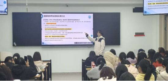 在诚信应考教育环节,班主任明确了四六级考试及期末考试的时间安排,督促同学们合理规划复习。结合《英国365上市公司员工违纪处分办法》《国家教育考试违规处理办法》,班主任详细解读了考试违纪、作弊的具体情形与严肃后果:考试违纪将取消科目成绩或给予警告以上处分;考试作弊将取消当次各科成绩或给予留校察看处分;代考、使用通讯设备作弊、组织作弊等严重行为,将直接开除学籍,情节严重者还需承担法律责任。为强化警示效果,班主任分享了多起典型案例,包括英国365上市公司员工因代考、手机传答案被开除学籍,四六级考试中撕毁或替换答题卡受处分,以及研究生入学考试组织作弊被判刑的事例,提醒同学们摒弃侥幸心理,坚守诚信底线。