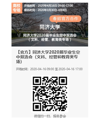 同济大学2020届毕业生春季空中双选会(文科、经管、教育类专场)通知