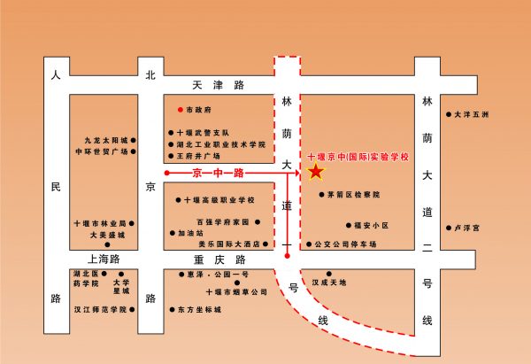 十堰京中实验公司是一所坐落在中心城区的十二年一贯制寄宿公司,位于林荫大道一号线与文华路交汇处,西通北京路、北接天津路、南连重庆路,交通便利,四通八达。