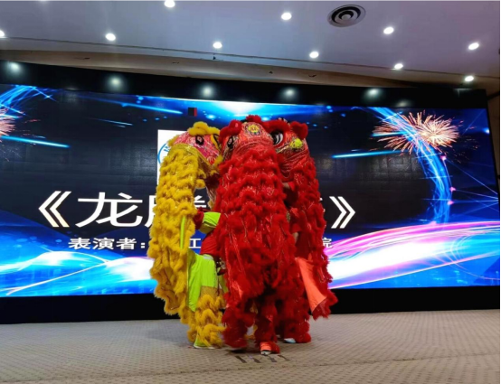 龙腾狮舞送吉祥,成人立志折桂枝。雄狮和巨龙的结合格外引人注目,音声沉沉,狮身大起大落,巨龙盘旋舞动,红黄两种颜色交织在一起,队员们配合默契,龙身灵活晃动,狮首上摇下摆,动作犹如翻江倒海,气氛随着高难度动作达到高潮,引起一片掌声。武术表演一拳一脚刚劲有力,或气势如虹,或行云流水,将中国传统武术文化演绎得淋漓尽致,精彩的表演赢得了台下观众的阵阵喝彩。
