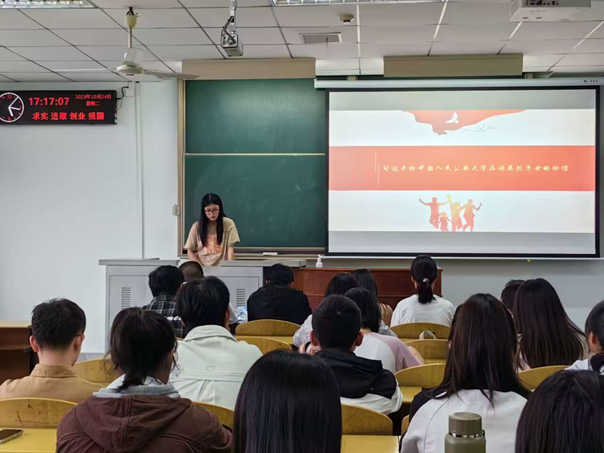 团会第三项是学习习近平总书记给中国人民公安大学在读英烈子女的回信精神。习近平总书记9月28日给中国人民公安大学在读英烈子女回信,对他们提出殷切期望,向公安英烈的家人致以问候。各团支部积极组织团员、青年用心用情学习回信精神,以主题分享、故事会等形式深刻领悟回信重大意义,铭记关心关怀,坚定理想信念,大力弘扬英烈精神。