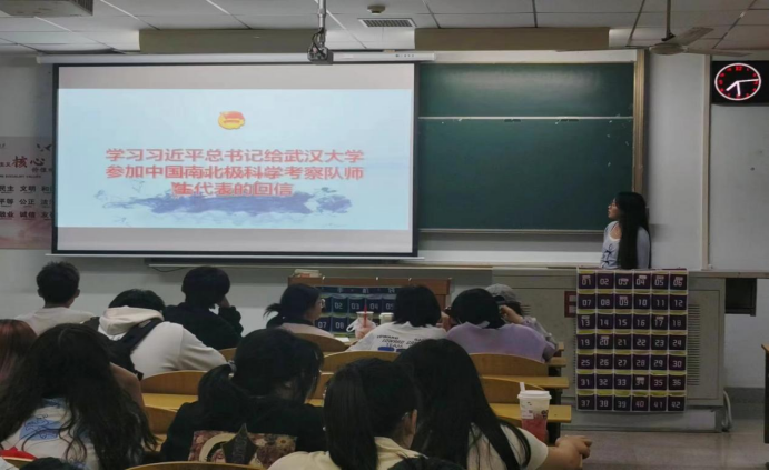 团会活动第二项,学习习近平总书记给武汉大学参加中国南北极科学考察队师生代表的回信。各团支部以支部为单位,集中开展学习习近平总书记回信精神。支部成员围绕寒假“返家乡”社会实践经历,分享实习实训见闻,结合回信精神,畅谈将“小我”成长融入“大我”奋斗中的目标与规划。