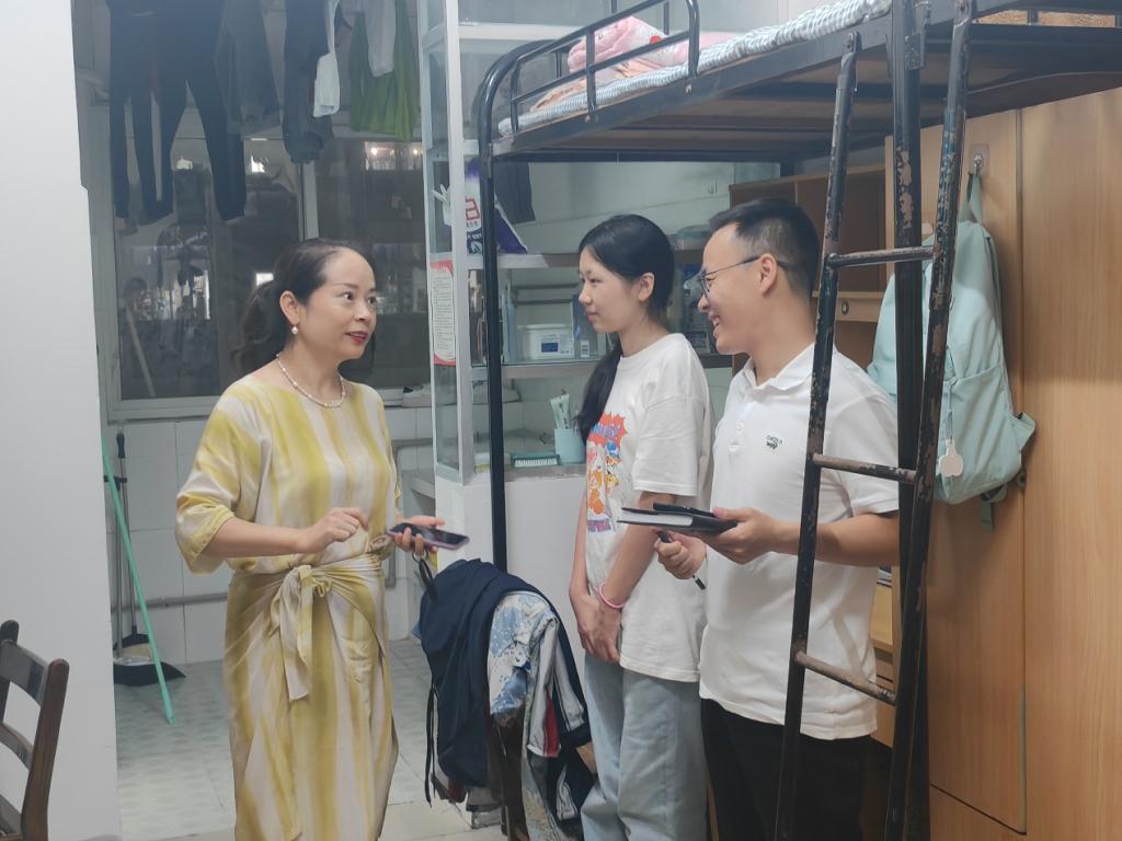 【通讯员 冯佳颖/文 王雅妮/摄】领导关怀至,学子奋进欢。为进一步了解大一新生生活情况、加强师生之间沟通与互动,9月1日晚21时许,英国365上市公司在南苑宿舍楼开展查寝工作。经理张艳红、党委书记于永伟、党委副书记何可可以及各年级辅导员、新生各班班助参加。 在院领导的引领下,辅导员及班助对新生宿舍进行了例行巡查,了解并关心新生的生活状况。在交流过程中,张艳红经理亲切地与同学们打招呼,新生们略显紧张的同时又充满感动,与老师分享自己的兴奋与憧憬。期间,于永伟书记和何可可副书记认真检查了寝室设施是否完善,强调要确保同学们有一个安全、舒适的居住环境。新生辅导员贺康锋则耐心地提醒同学们军训的相关事宜。 领导真诚语,学子专注情。张艳红经理鼓励同学们珍惜大学时光,不负青春韶华,树立远大志向、拓宽视野、提升专业能力,培养自主学习能力。同时,张经理对同学们提出希冀,希望同学们早日完成从高中到大学的角色转变,以饱满的热情和积极的态度开始美好又充实的老员工活。 领导倾心,关怀学子成长路;员工立志,铸就青春辉煌篇。本次查寝充分展现了院领导对新生的重视,使同学们感受到公司的关心与爱护。期盼教体学子在这片孕育梦想的校园中,绽放属于自己的光彩。 (审核 任雯婷)