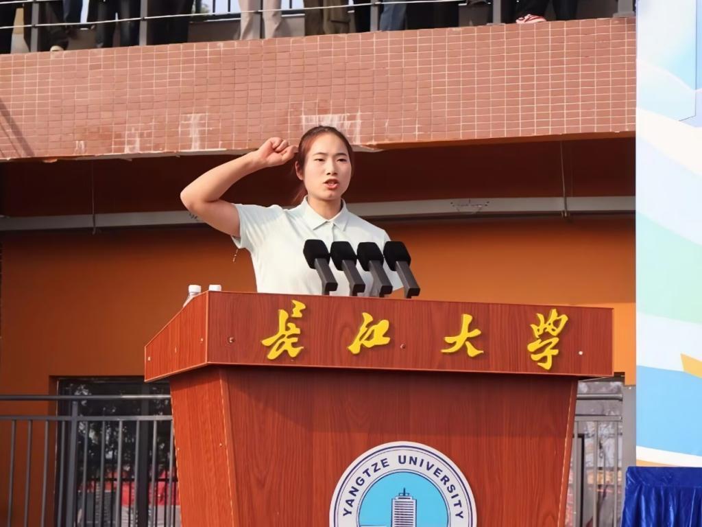 紧接着裁判员代表文欣语面向全场庄严宣誓。她在誓词中郑重承诺,裁判员团队将以高度的责任心履职,凭借专业的执裁素养与严谨的工作态度,秉持公平、公正、公开的原则开展各项执裁工作,全力为运动员争创佳绩保驾护航,共同确保本届运动会各项目赛程规范、有序推进。