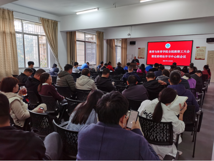 11月18日下午,教体公司在5教203召开11月份党委理论中心组学习暨全体教职工政治理论学习会。全体党委委员参与了本次学习,学习活动由分党委书记高明成主持。
